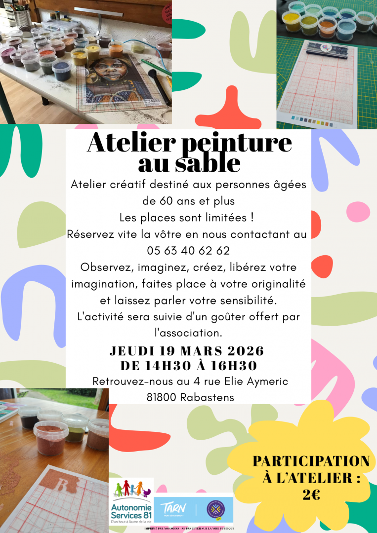L'atelier se déroule à Autonomie Services 81, 4 rue Elie Aymeric à Rabastens (81800).